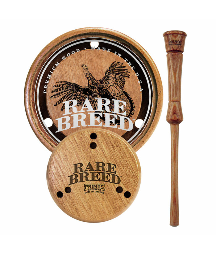 Primos Rare Breed™ est proposé avec des surfaces en ardoise ou en verre. La coupelle arrondie confortable tient bien dans la main lorsque vous travaillez un oiseau. Les bords extérieurs de l'appeau produisent des glapissements, des coupures et des claquements plus aigus, tandis que des tonalités plus basses et plus profondes peuvent être produites vers le milieu.